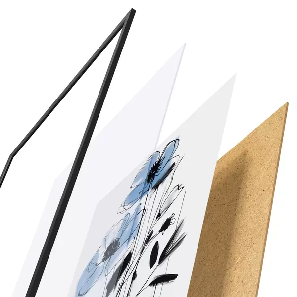 Plakat składa się z ramy, pleksi, wydrukowanego obrazu i podkładu z płyty wiórowej. Plakat można natychmiast zawiesić na ścianie dzięki uchwytom z tyłu.