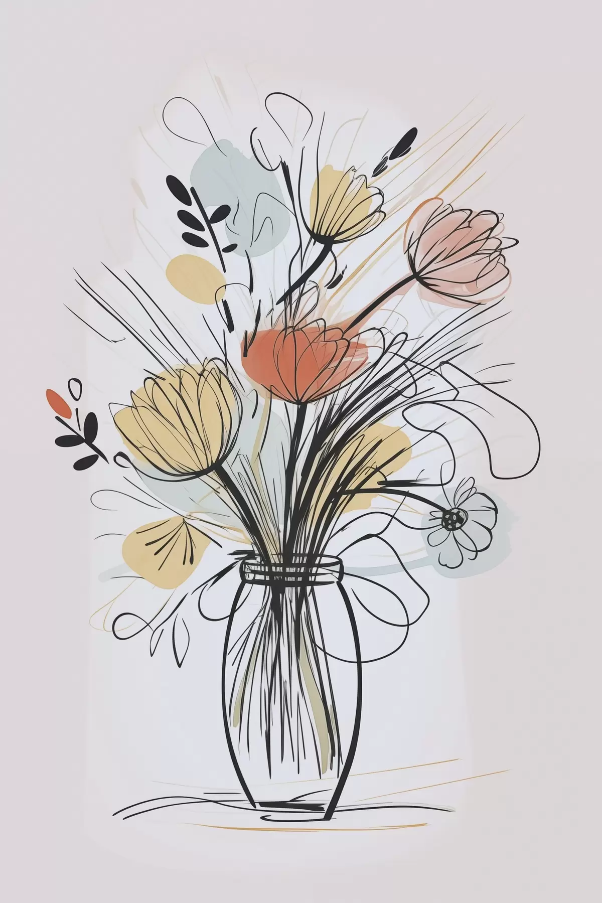 Poster Kwiaty w wazonie imitującym rysunek Nr f47494