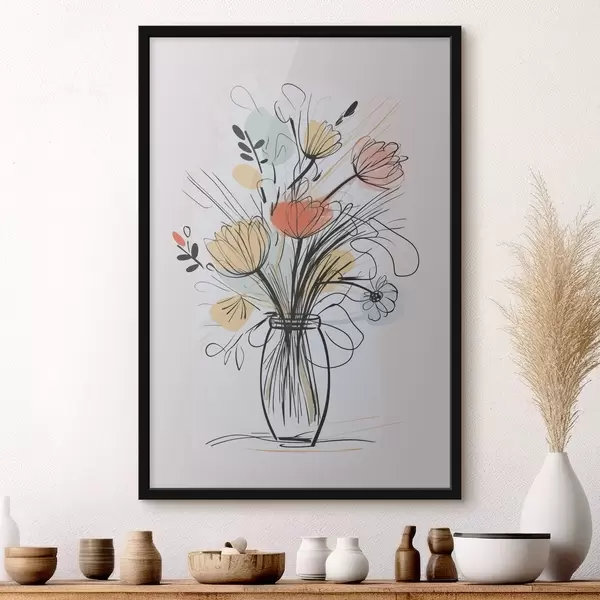 Plakat Kwiaty w wazonie imitującym rysunek f47494