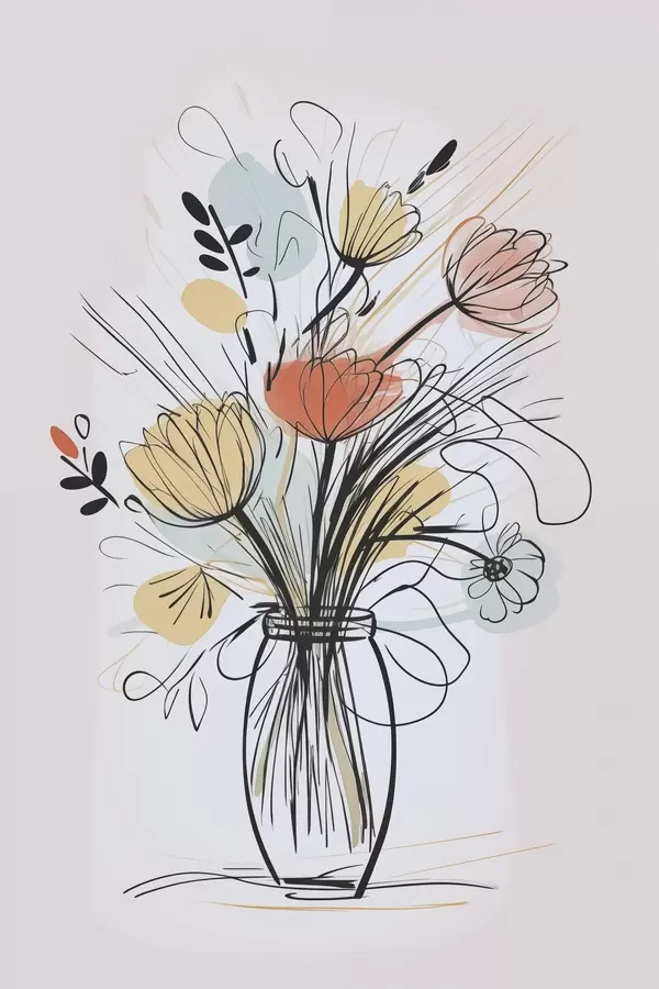 Plakat Kwiaty w wazonie imitującym rysunek f47494