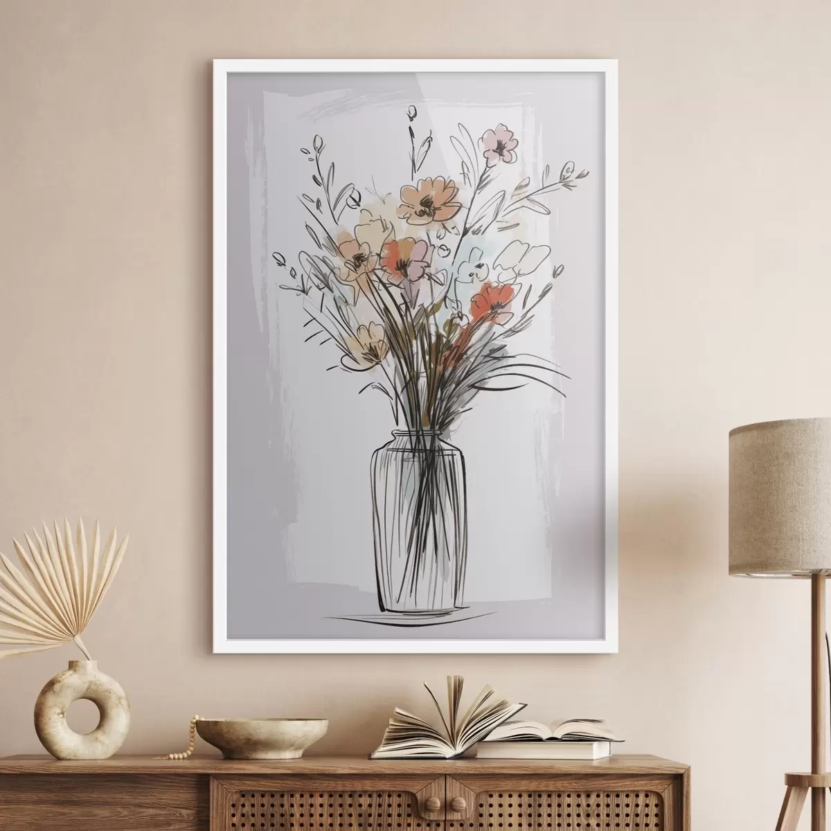 Plakat Kwiaty w wazonie imitującym rysunek f47495