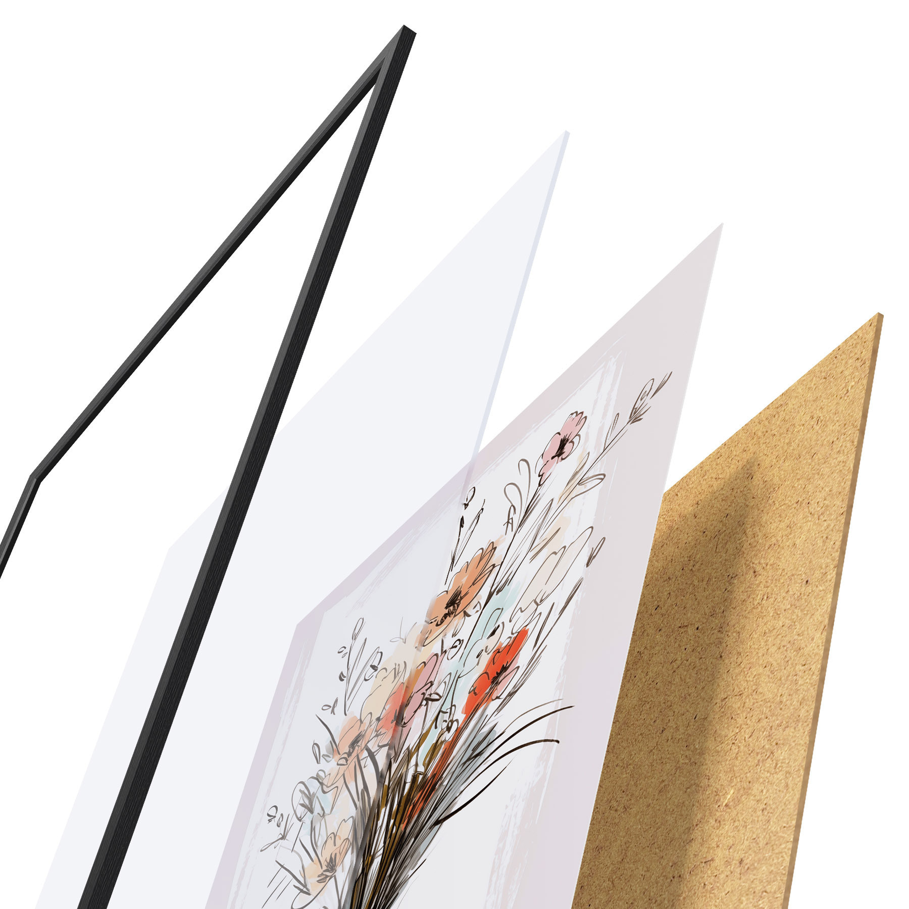 Plakat składa się z ramy, pleksi, wydrukowanego obrazu i podkładu z płyty wiórowej. Plakat można natychmiast zawiesić na ścianie dzięki uchwytom z tyłu.