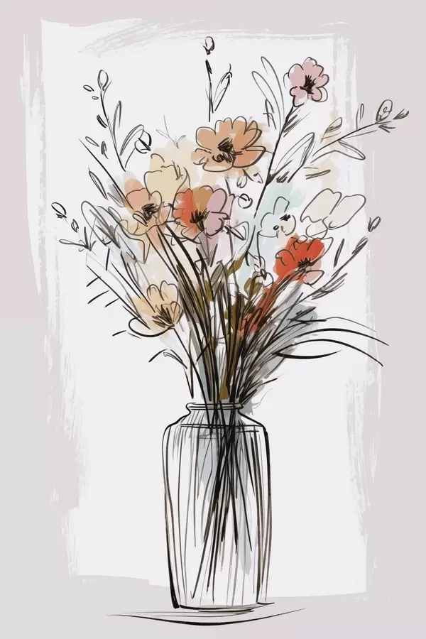 Poster Kwiaty w wazonie imitującym rysunek Nr f47495
