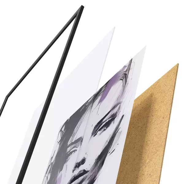 Plakat składa się z ramy, pleksi, wydrukowanego obrazu i podkładu z płyty wiórowej. Plakat można natychmiast zawiesić na ścianie dzięki uchwytom z tyłu.