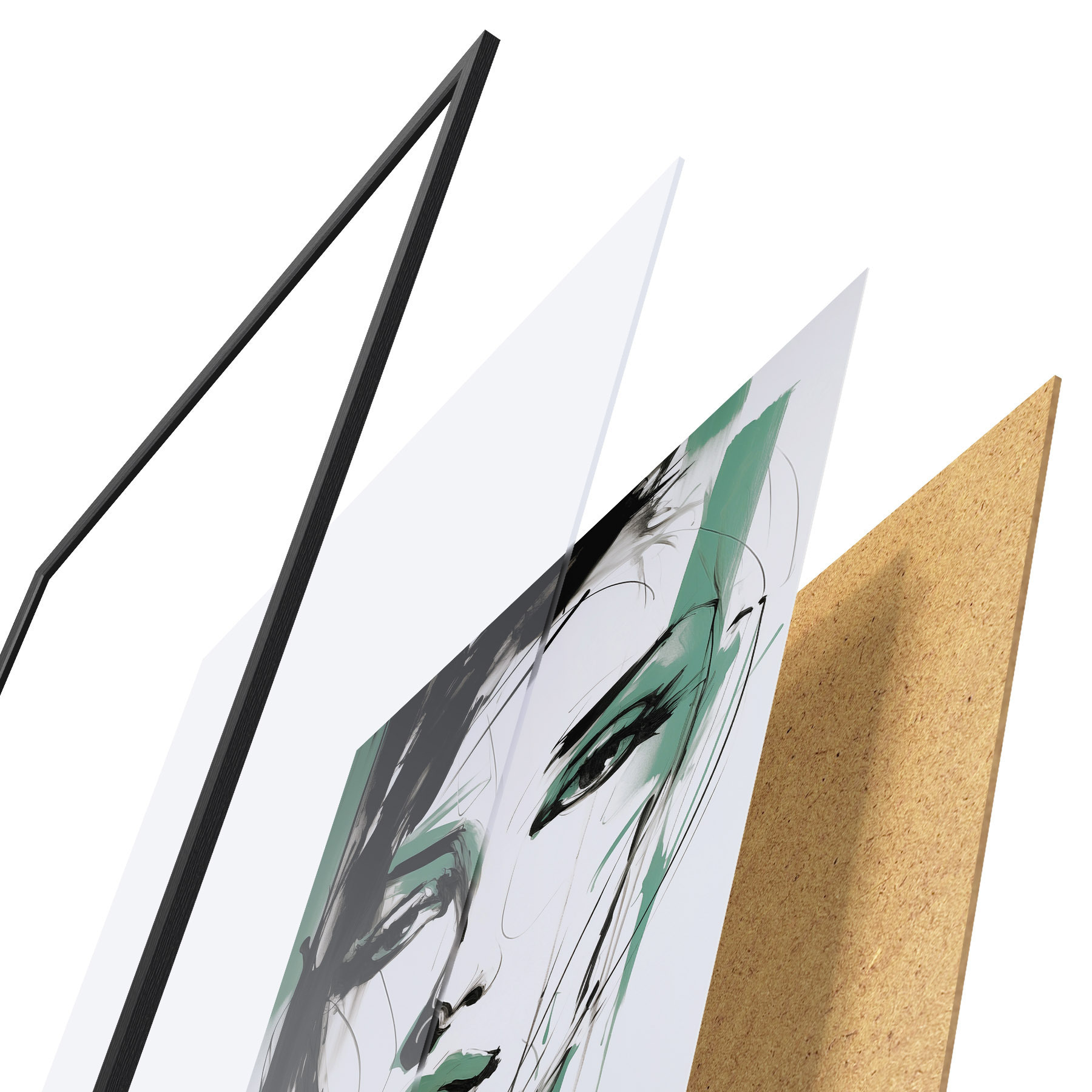 Plakat składa się z ramy, pleksi, wydrukowanego obrazu i podkładu z płyty wiórowej. Plakat można natychmiast zawiesić na ścianie dzięki uchwytom z tyłu.