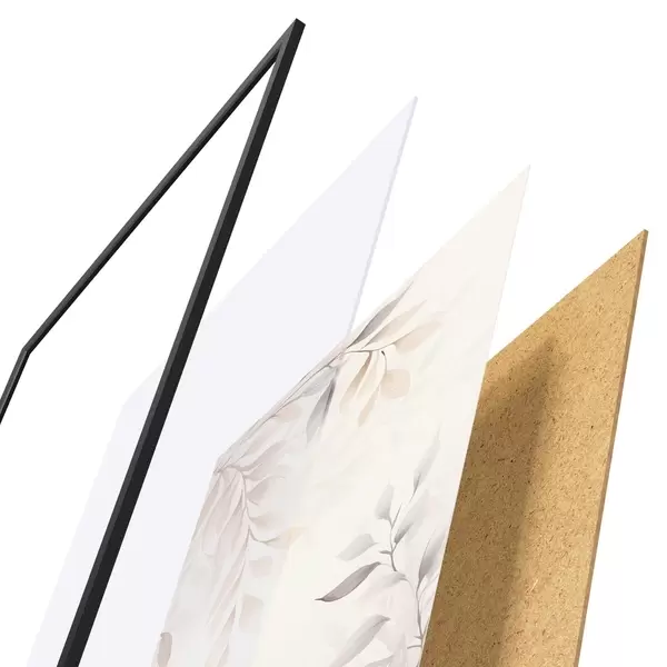 Plakat składa się z ramy, pleksi, wydrukowanego obrazu i podkładu z płyty wiórowej. Plakat można natychmiast zawiesić na ścianie dzięki uchwytom z tyłu.