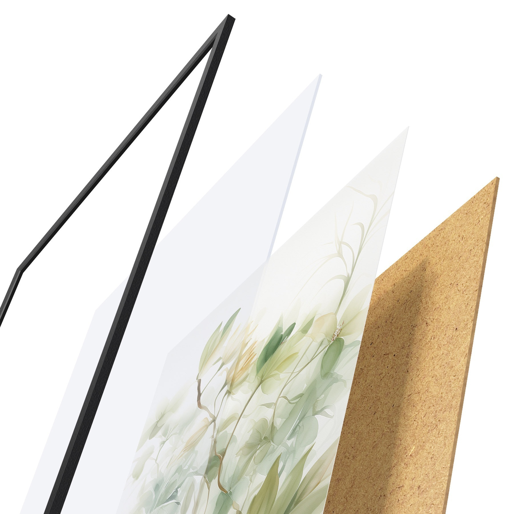 Plakat składa się z ramy, pleksi, wydrukowanego obrazu i podkładu z płyty wiórowej. Plakat można natychmiast zawiesić na ścianie dzięki uchwytom z tyłu.