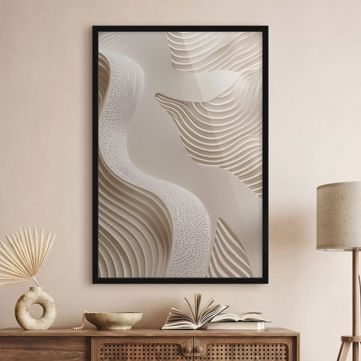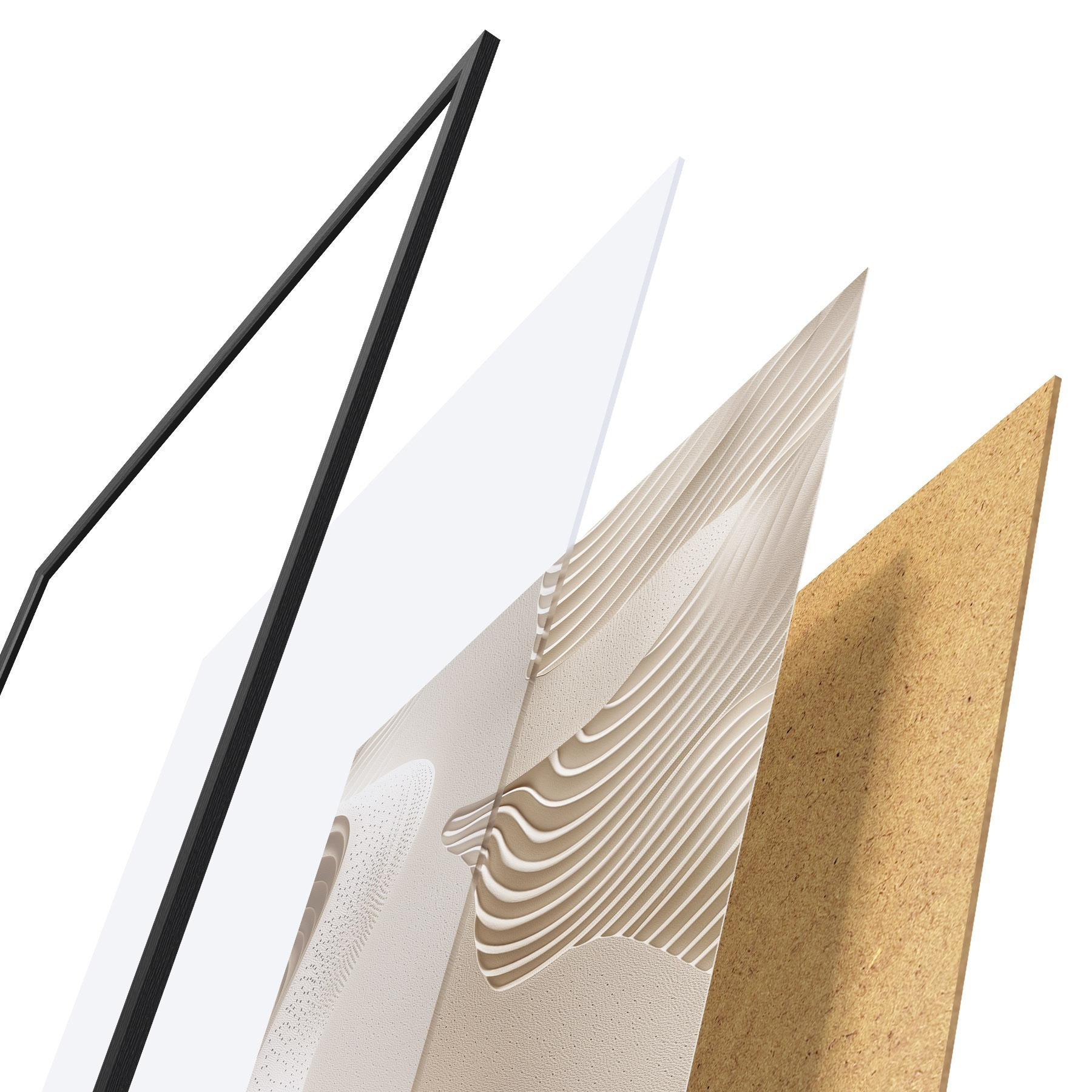 Plakat składa się z ramy, pleksi, wydrukowanego obrazu i podkładu z płyty wiórowej. Plakat można natychmiast zawiesić na ścianie dzięki uchwytom z tyłu.
