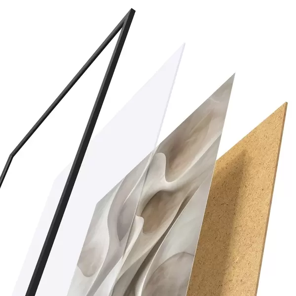 Plakat składa się z ramy, pleksi, wydrukowanego obrazu i podkładu z płyty wiórowej. Plakat można natychmiast zawiesić na ścianie dzięki uchwytom z tyłu.