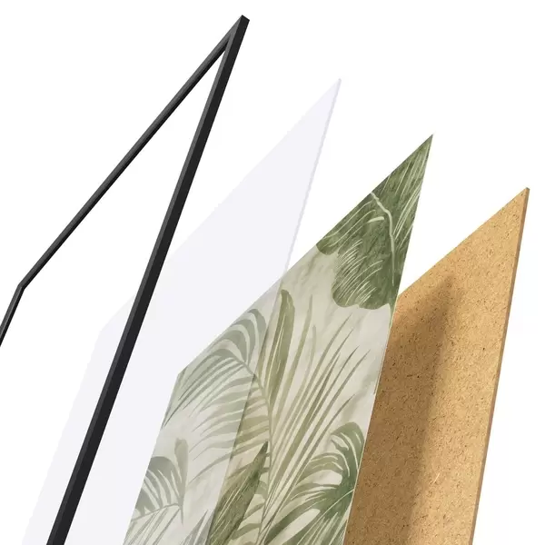 Plakat składa się z ramy, pleksi, wydrukowanego obrazu i podkładu z płyty wiórowej. Plakat można natychmiast zawiesić na ścianie dzięki uchwytom z tyłu.
