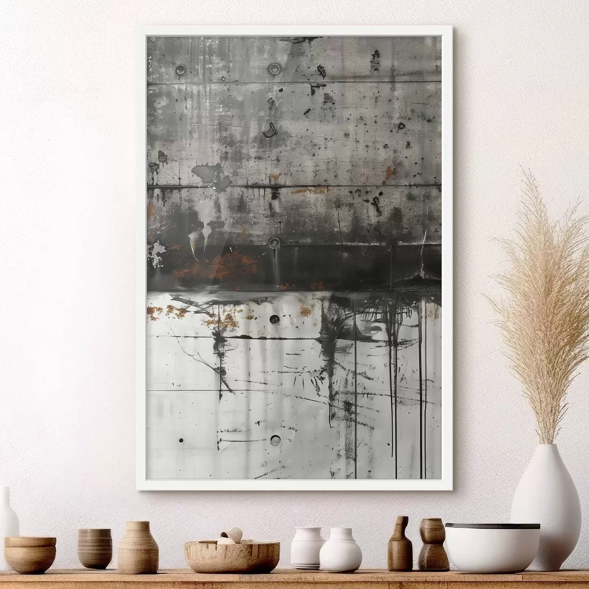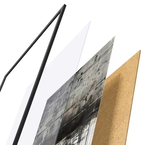Plakat składa się z ramy, pleksi, wydrukowanego obrazu i podkładu z płyty wiórowej. Plakat można natychmiast zawiesić na ścianie dzięki uchwytom z tyłu.