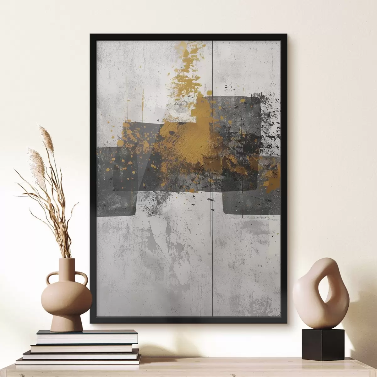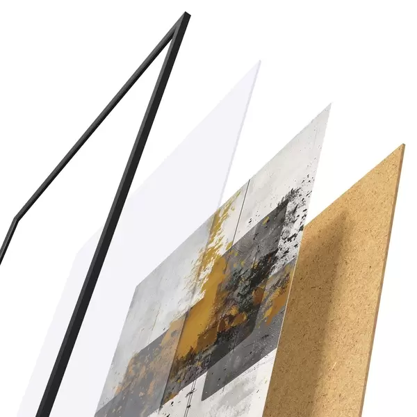 Plakat składa się z ramy, pleksi, wydrukowanego obrazu i podkładu z płyty wiórowej. Plakat można natychmiast zawiesić na ścianie dzięki uchwytom z tyłu.