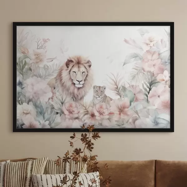 Poster Lwy w tropikalnych zaroślach, imitacja akwareli Nr f47640