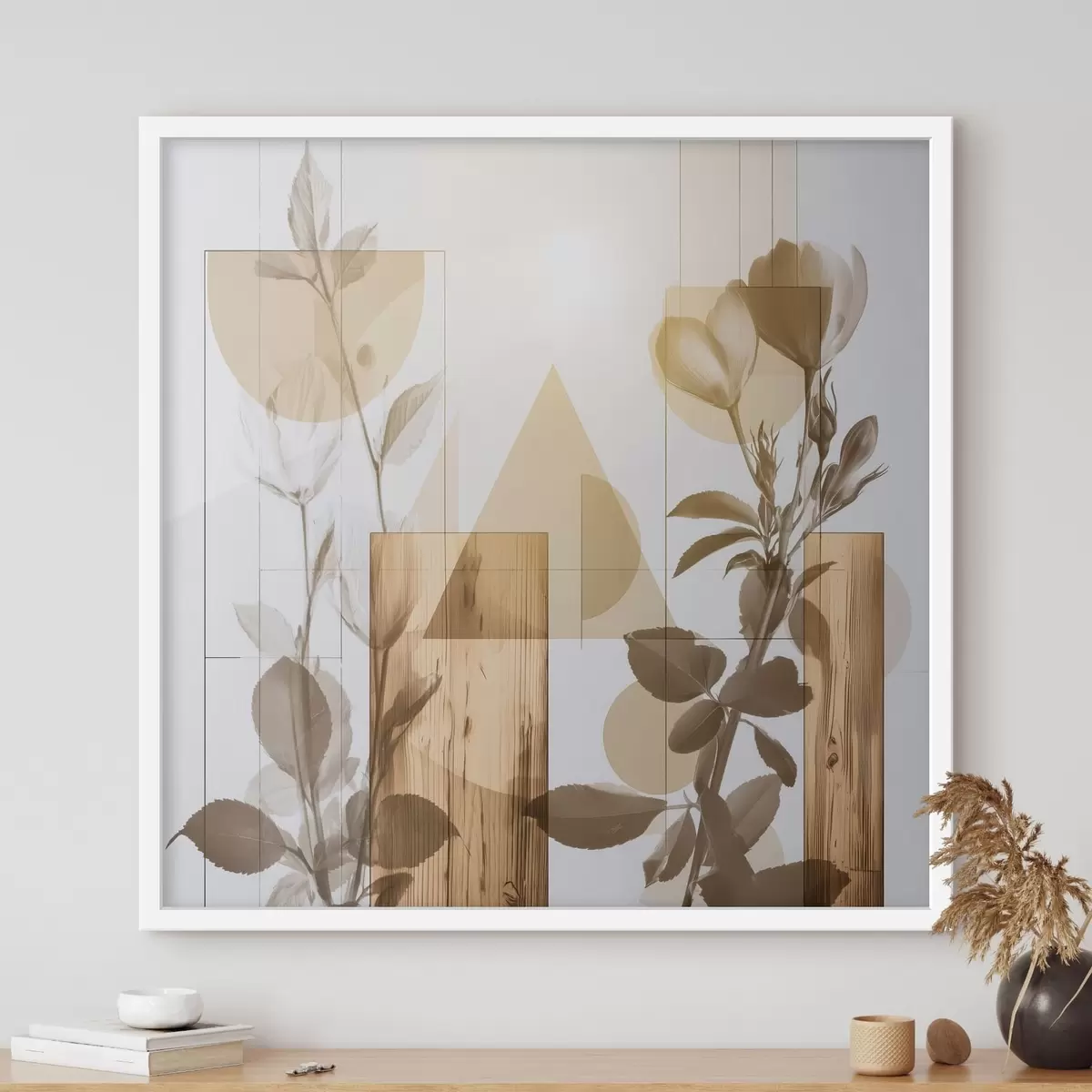 Poster Abstrakcja z kwiatami i geometrycznymi kształtami Nr f47655