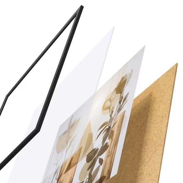 Plakat składa się z ramy, pleksi, wydrukowanego obrazu i podkładu z płyty wiórowej. Plakat można natychmiast zawiesić na ścianie dzięki uchwytom z tyłu.