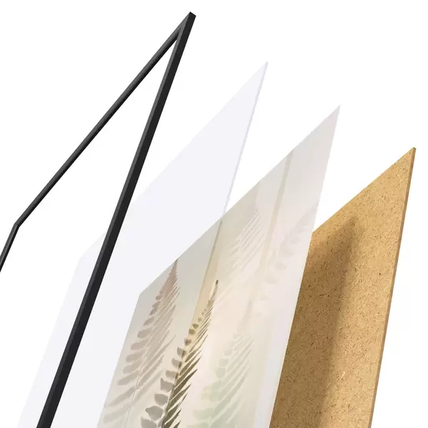 Plakat składa się z ramy, pleksi, wydrukowanego obrazu i podkładu z płyty wiórowej. Plakat można natychmiast zawiesić na ścianie dzięki uchwytom z tyłu.