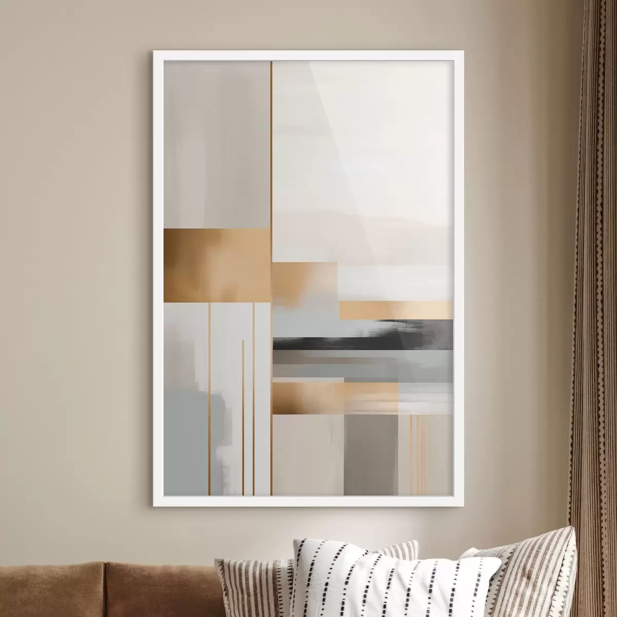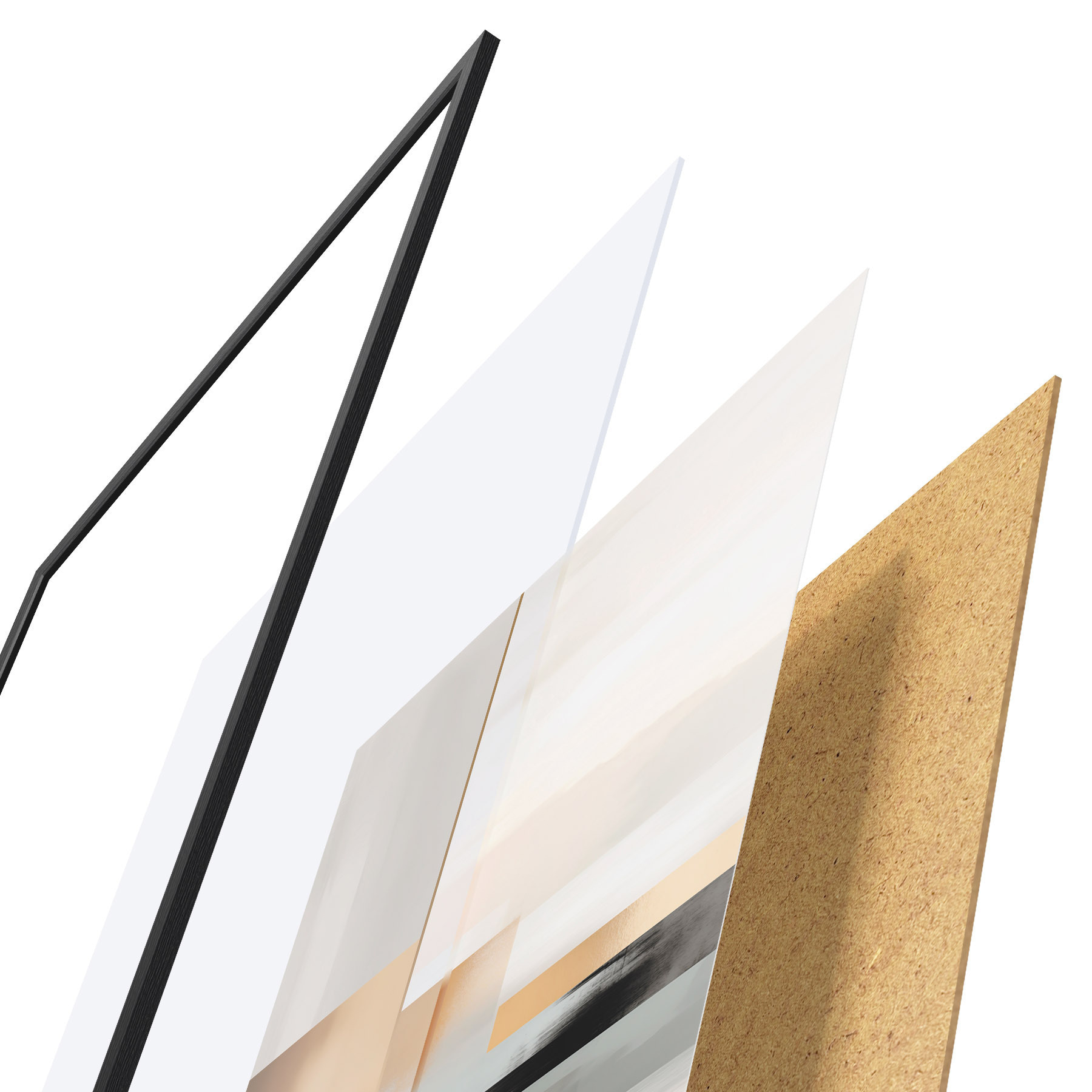 Plakat składa się z ramy, pleksi, wydrukowanego obrazu i podkładu z płyty wiórowej. Plakat można natychmiast zawiesić na ścianie dzięki uchwytom z tyłu.