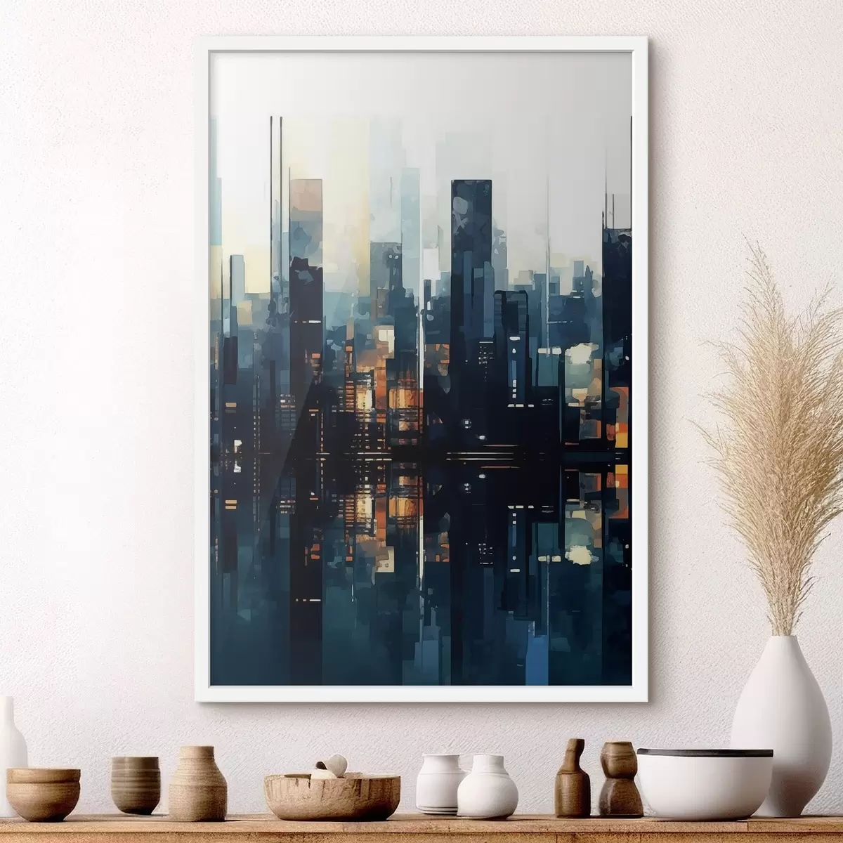 Plakat Wieczorny zachód słońca w dużym mieście f47676