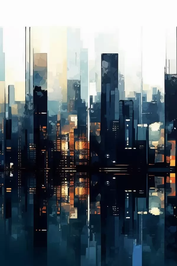 Poster Wieczorny zachód słońca w dużym mieście Nr f47676
