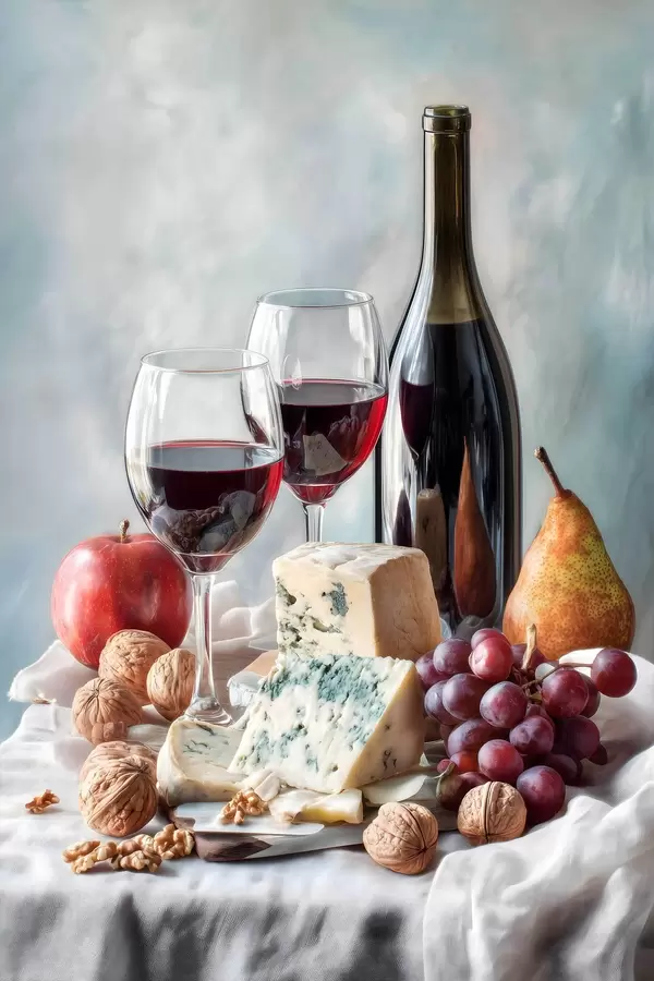 Poster martwa natura z winem, serem i orzechami Nr f47686