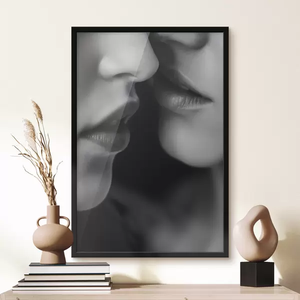 Plakat czarne i białe usta dwóch kobiet f47688