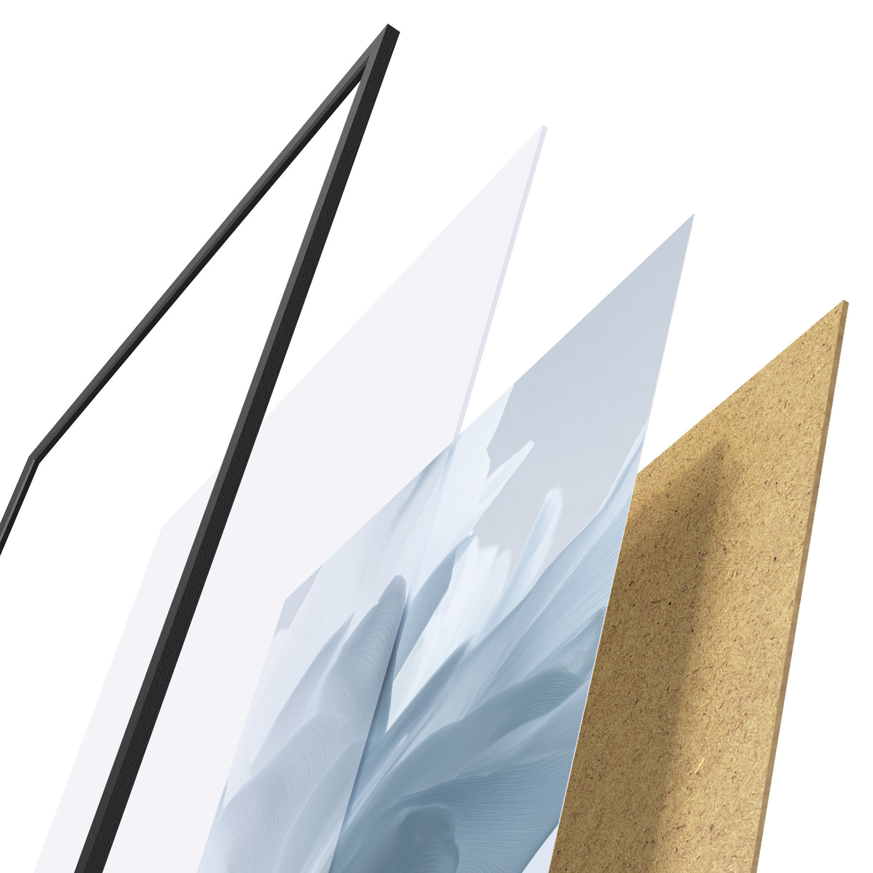 Plakat składa się z ramy, pleksi, wydrukowanego obrazu i podkładu z płyty wiórowej. Plakat można natychmiast zawiesić na ścianie dzięki uchwytom z tyłu.