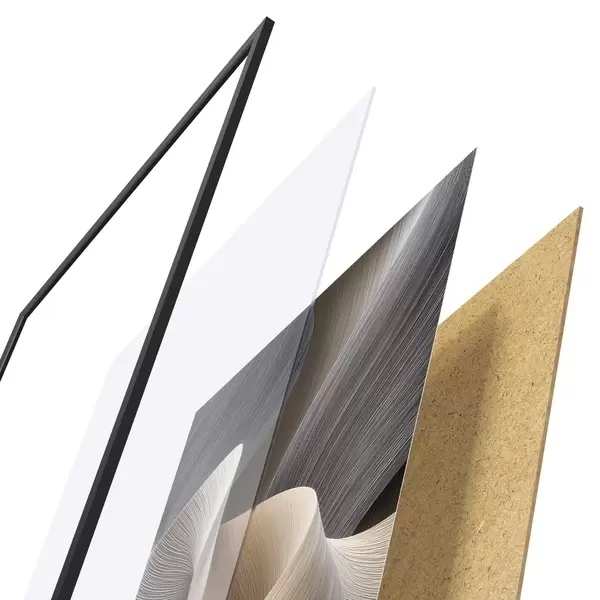 Plakat składa się z ramy, pleksi, wydrukowanego obrazu i podkładu z płyty wiórowej. Plakat można natychmiast zawiesić na ścianie dzięki uchwytom z tyłu.