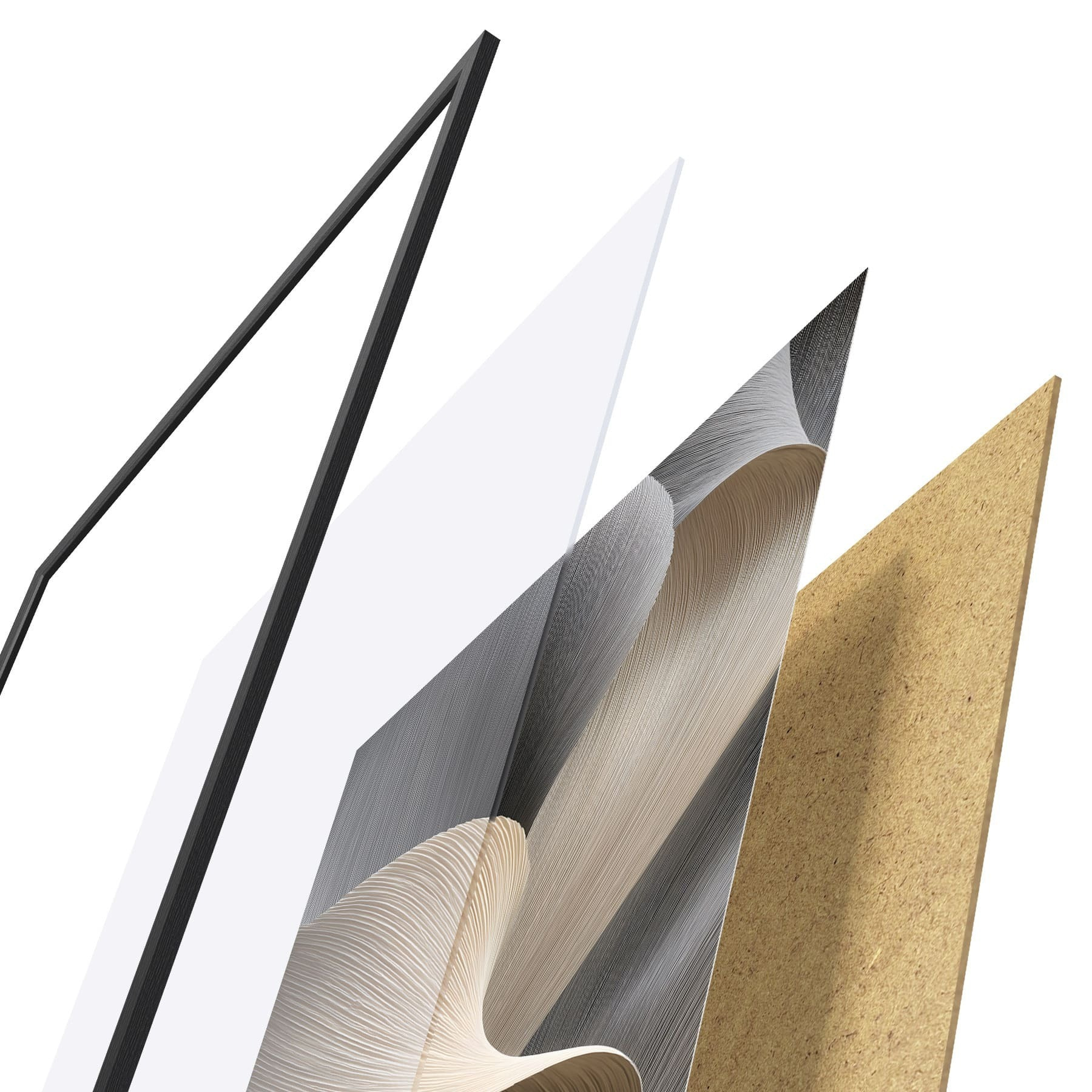 Plakat składa się z ramy, pleksi, wydrukowanego obrazu i podkładu z płyty wiórowej. Plakat można natychmiast zawiesić na ścianie dzięki uchwytom z tyłu.