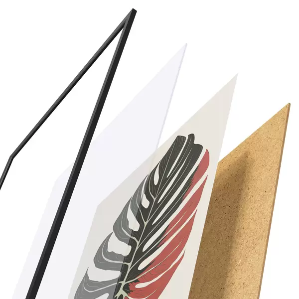 Plakat składa się z ramy, pleksi, wydrukowanego obrazu i podkładu z płyty wiórowej. Plakat można natychmiast zawiesić na ścianie dzięki uchwytom z tyłu.