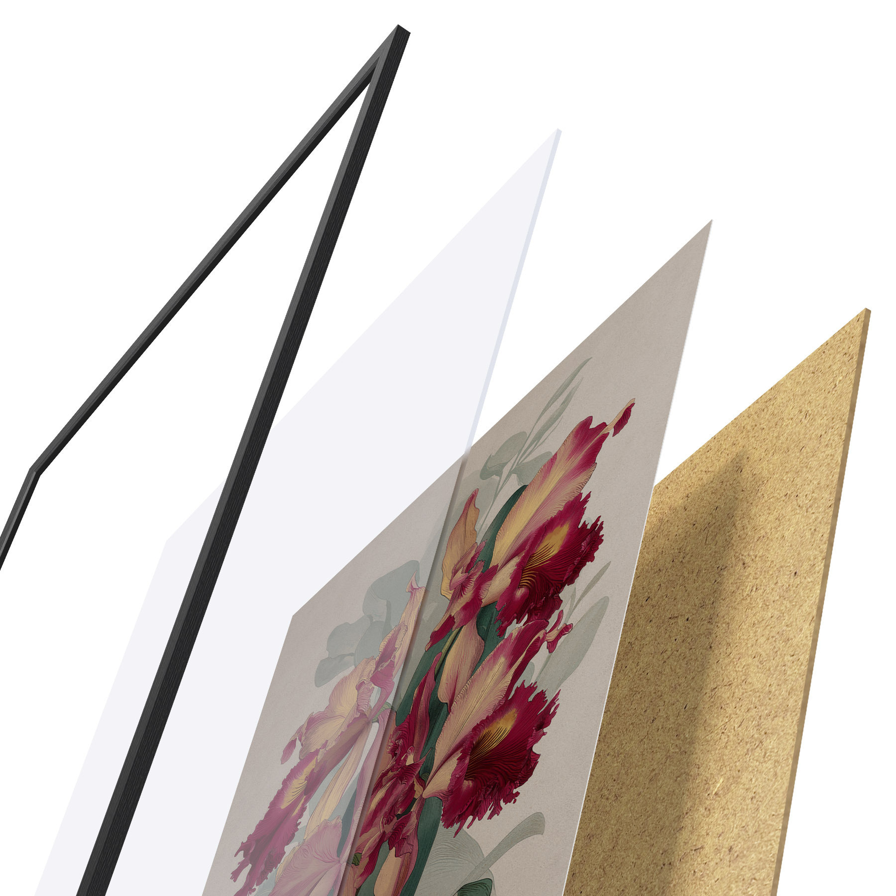 Plakat składa się z ramy, pleksi, wydrukowanego obrazu i podkładu z płyty wiórowej. Plakat można natychmiast zawiesić na ścianie dzięki uchwytom z tyłu.