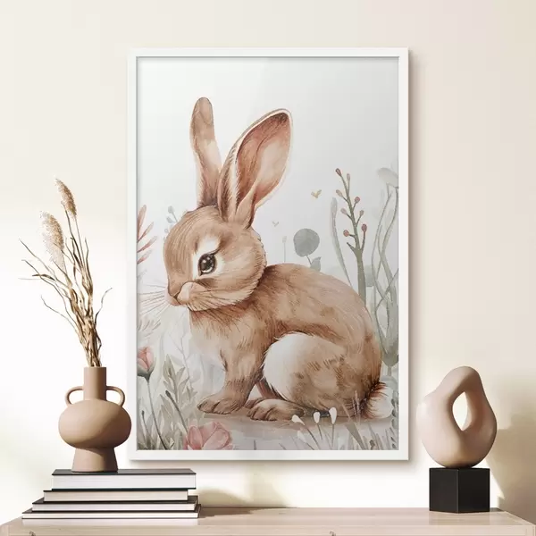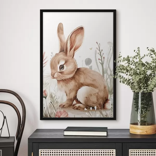 Poster Śliczny króliczek wśród kwiatów, efekt ołówkowy Nr f47741