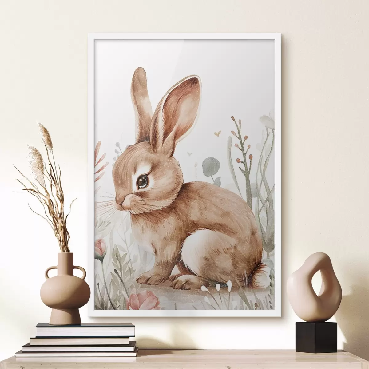 Plakat Śliczny króliczek wśród kwiatów, efekt ołówkowy f47741