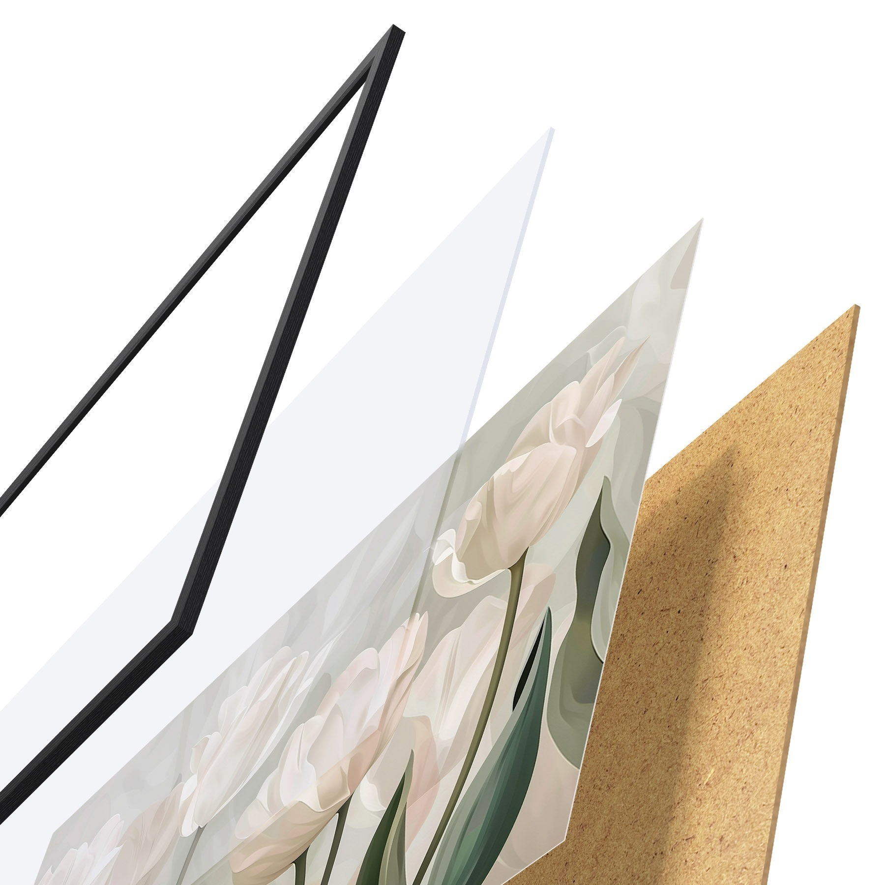 Plakat składa się z ramy, pleksi, wydrukowanego obrazu i podkładu z płyty wiórowej. Plakat można natychmiast zawiesić na ścianie dzięki uchwytom z tyłu.