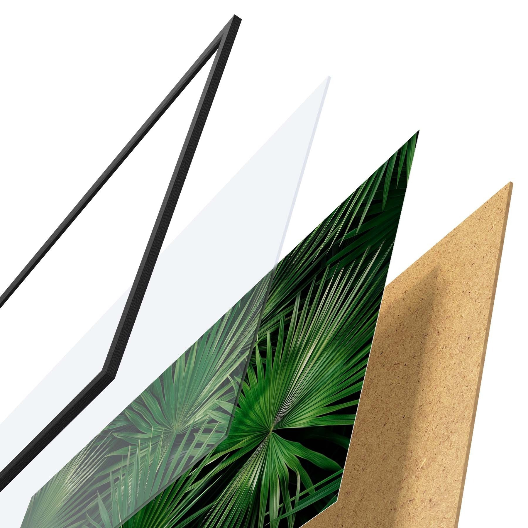 Plakat składa się z ramy, pleksi, wydrukowanego obrazu i podkładu z płyty wiórowej. Plakat można natychmiast zawiesić na ścianie dzięki uchwytom z tyłu.