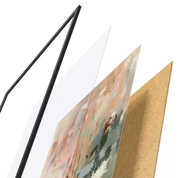 Plakat składa się z ramy, pleksi, wydrukowanego obrazu i podkładu z płyty wiórowej. Plakat można natychmiast zawiesić na ścianie dzięki uchwytom z tyłu.