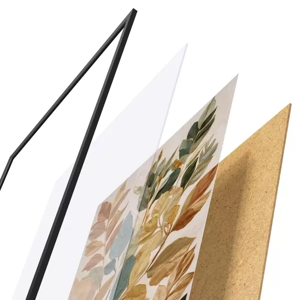 Plakat składa się z ramy, pleksi, wydrukowanego obrazu i podkładu z płyty wiórowej. Plakat można natychmiast zawiesić na ścianie dzięki uchwytom z tyłu.