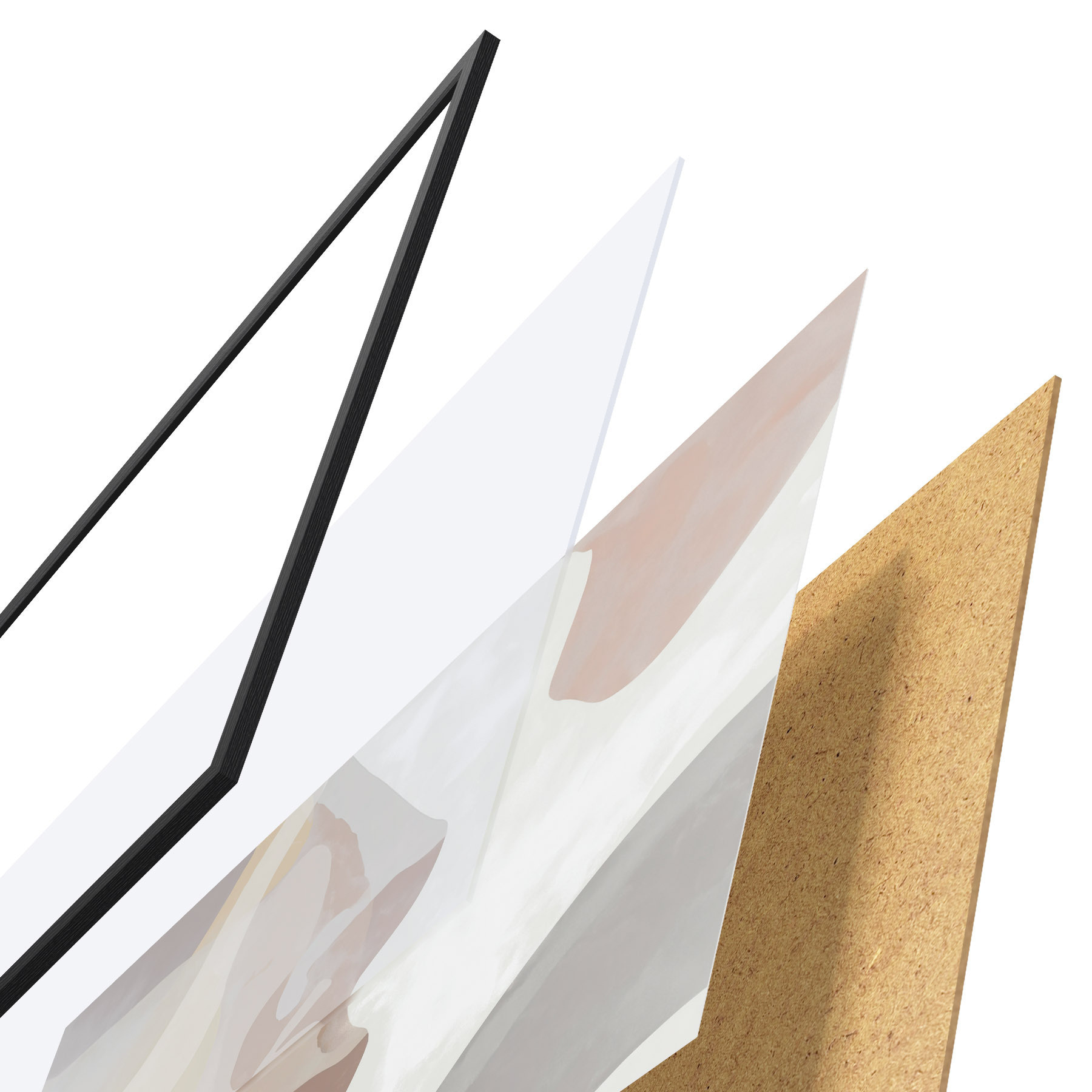 Plakat składa się z ramy, pleksi, wydrukowanego obrazu i podkładu z płyty wiórowej. Plakat można natychmiast zawiesić na ścianie dzięki uchwytom z tyłu.