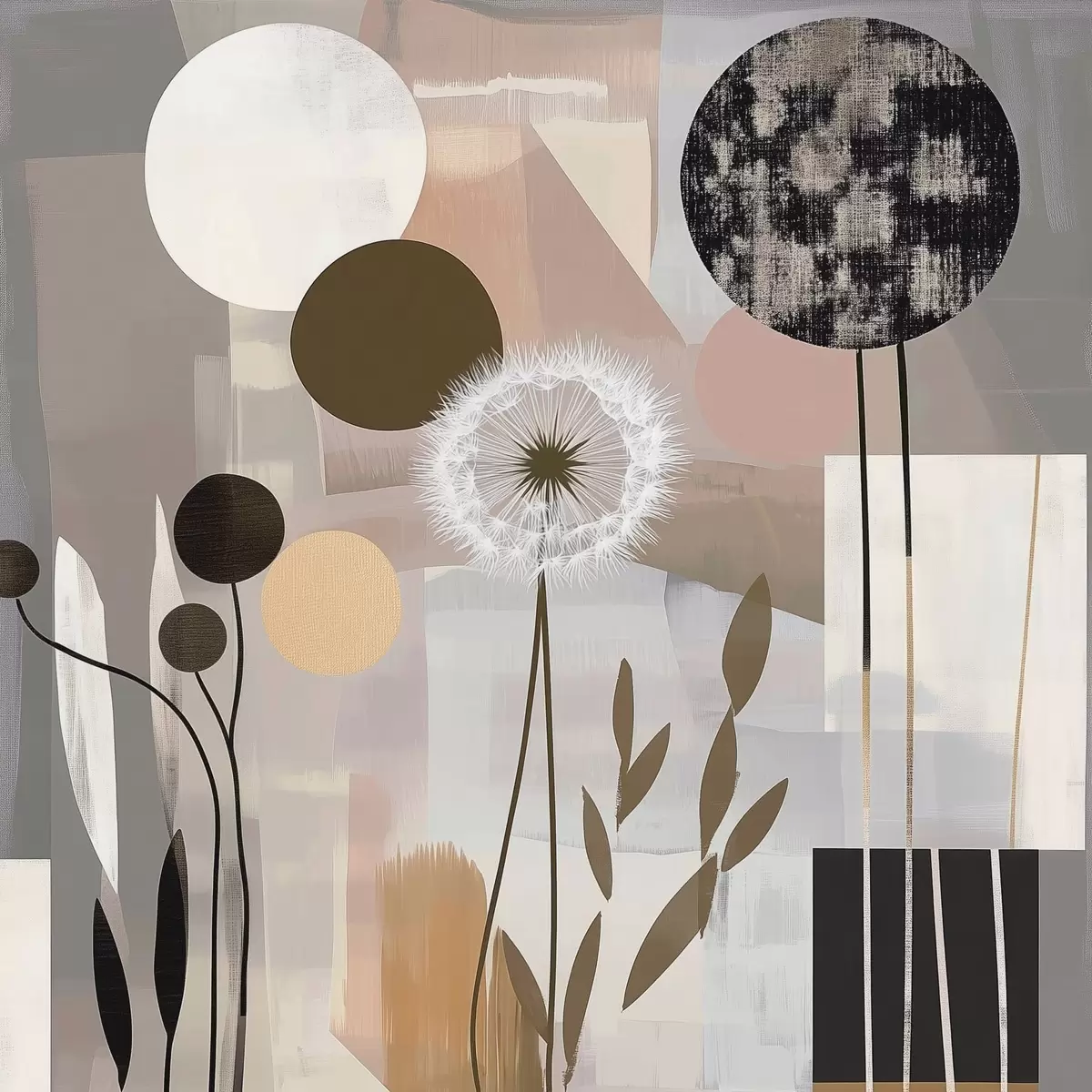 Plakat Abstrakcja z mleczami i roślinami f47775