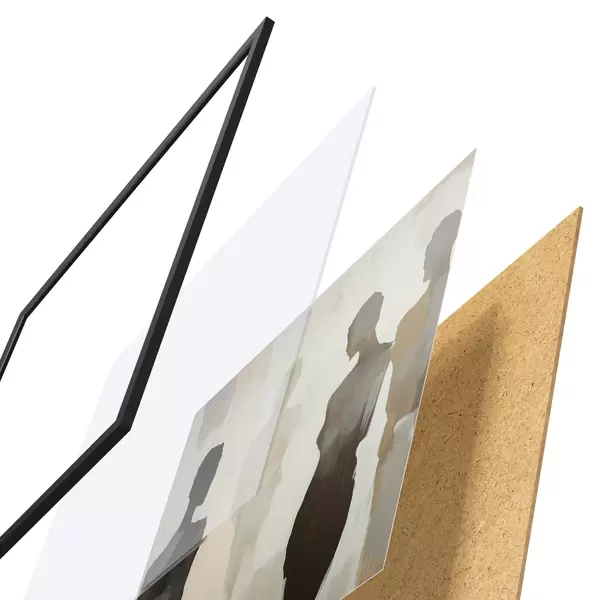 Plakat składa się z ramy, pleksi, wydrukowanego obrazu i podkładu z płyty wiórowej. Plakat można natychmiast zawiesić na ścianie dzięki uchwytom z tyłu.