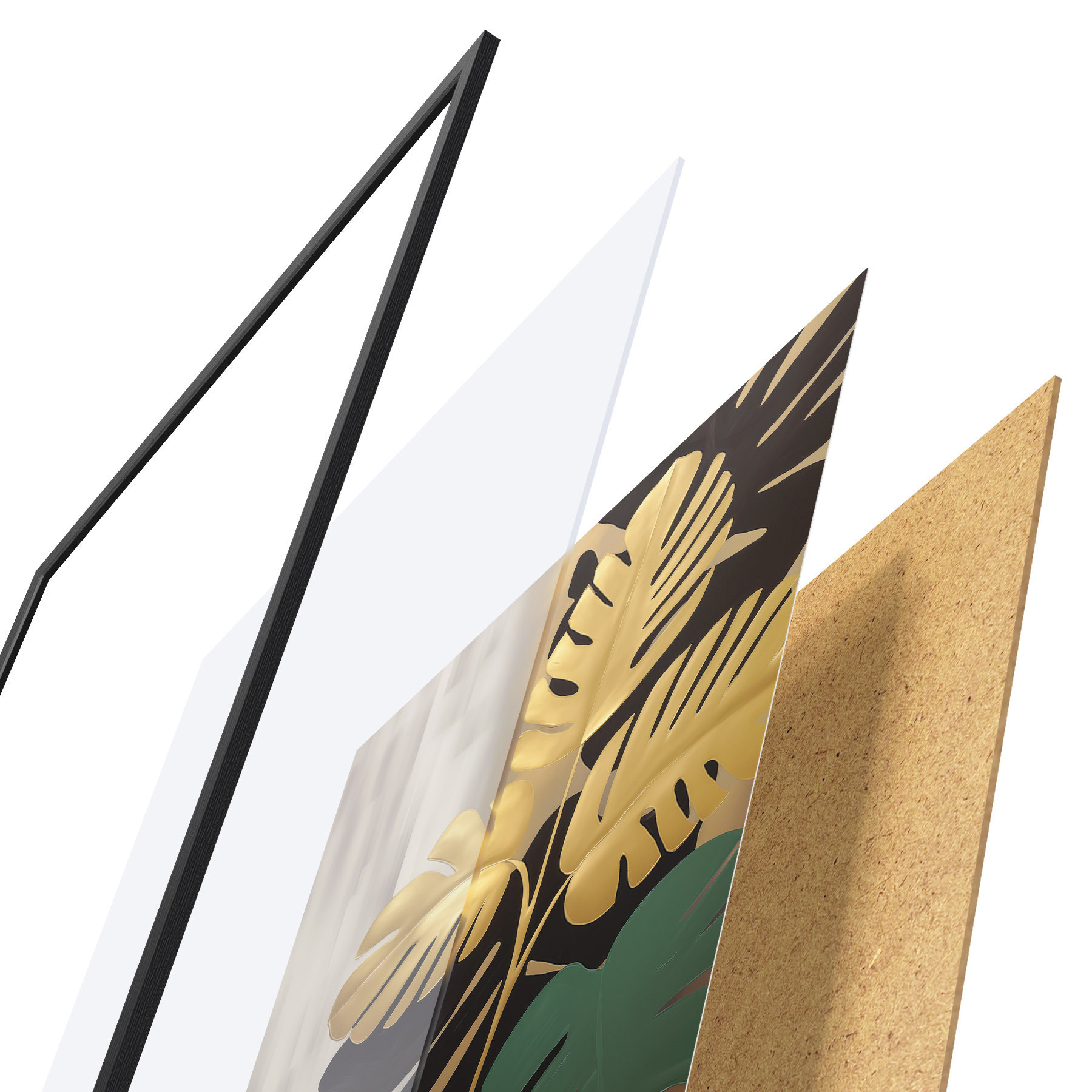 Plakat składa się z ramy, pleksi, wydrukowanego obrazu i podkładu z płyty wiórowej. Plakat można natychmiast zawiesić na ścianie dzięki uchwytom z tyłu.