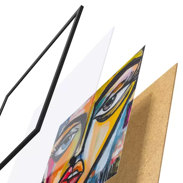 Plakat składa się z ramy, pleksi, wydrukowanego obrazu i podkładu z płyty wiórowej. Plakat można natychmiast zawiesić na ścianie dzięki uchwytom z tyłu.