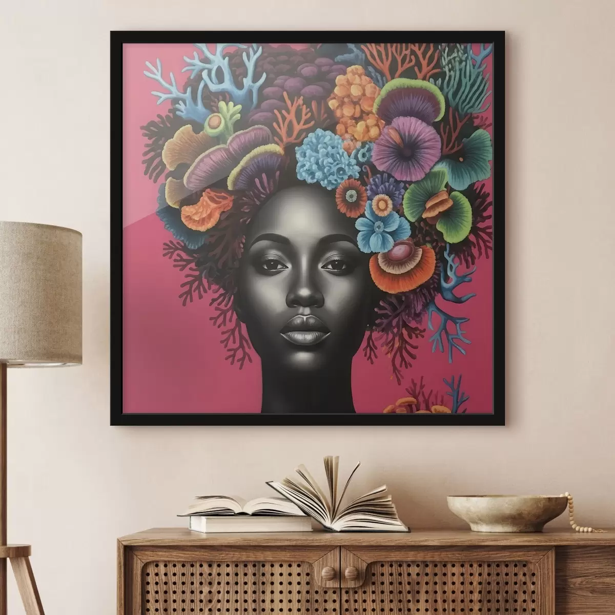 Poster Psychodeliczny portret kobiety z grzybami Nr f47786
