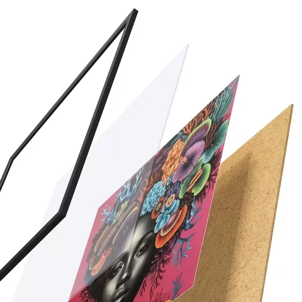 Plakat składa się z ramy, pleksi, wydrukowanego obrazu i podkładu z płyty wiórowej. Plakat można natychmiast zawiesić na ścianie dzięki uchwytom z tyłu.