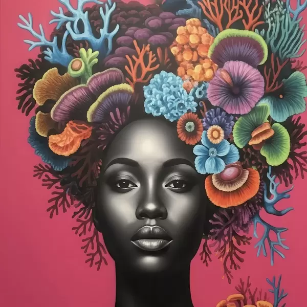 Poster Psychodeliczny portret kobiety z grzybami Nr f47786