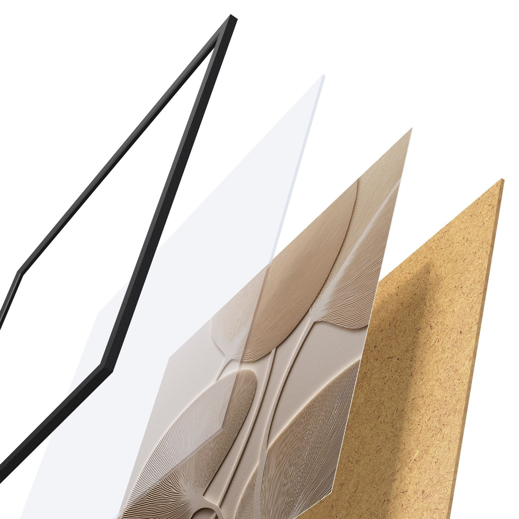 Plakat składa się z ramy, pleksi, wydrukowanego obrazu i podkładu z płyty wiórowej. Plakat można natychmiast zawiesić na ścianie dzięki uchwytom z tyłu.