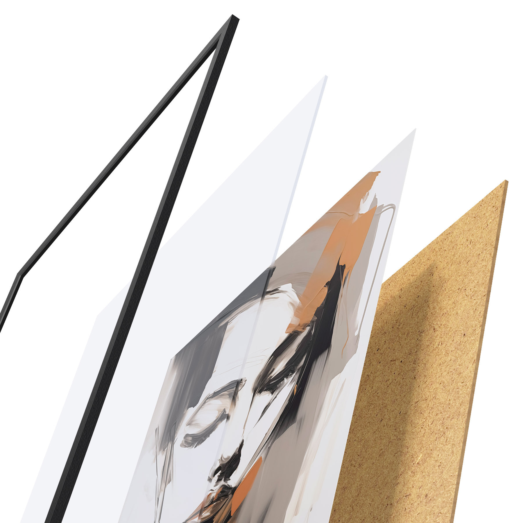 Plakat składa się z ramy, pleksi, wydrukowanego obrazu i podkładu z płyty wiórowej. Plakat można natychmiast zawiesić na ścianie dzięki uchwytom z tyłu.