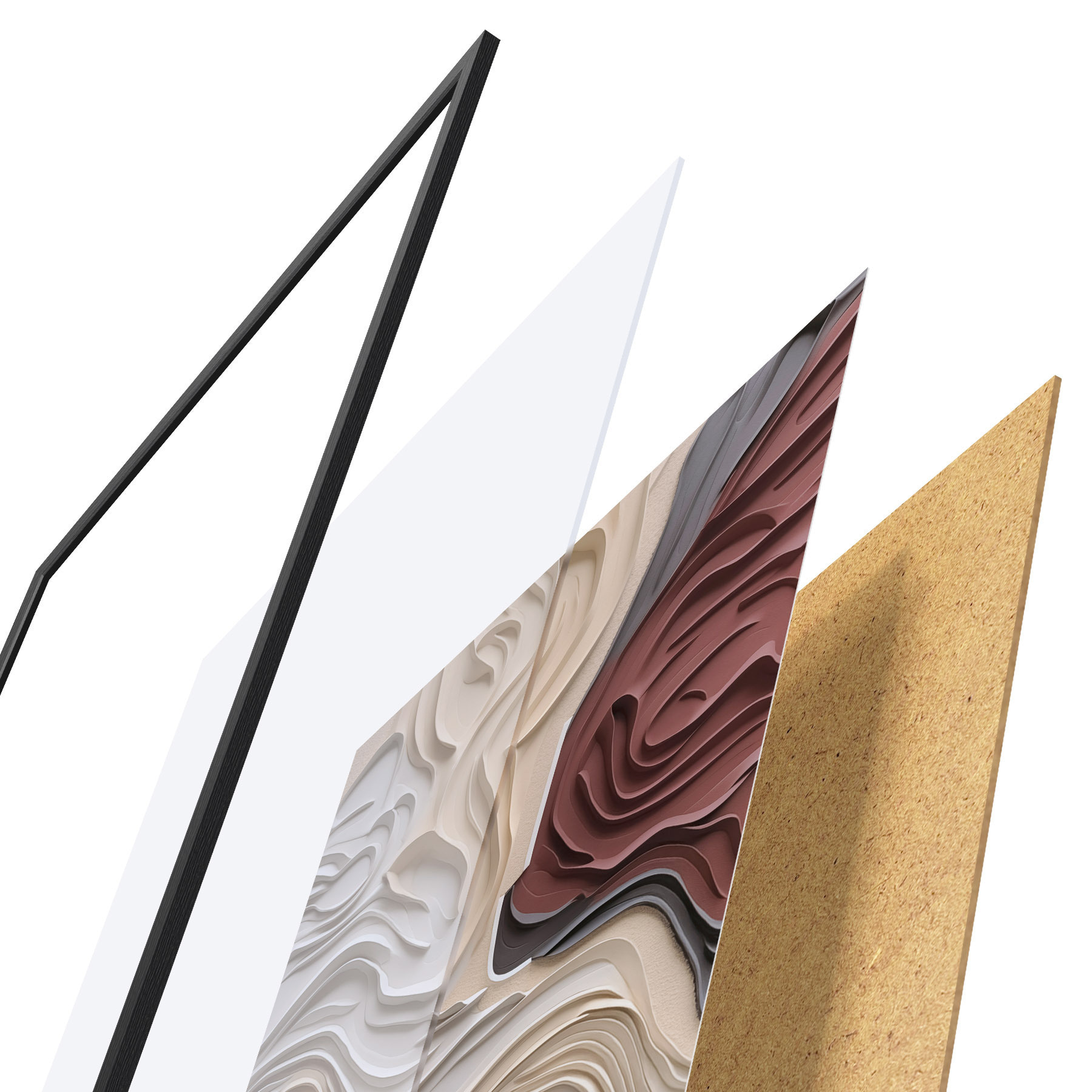 Plakat składa się z ramy, pleksi, wydrukowanego obrazu i podkładu z płyty wiórowej. Plakat można natychmiast zawiesić na ścianie dzięki uchwytom z tyłu.