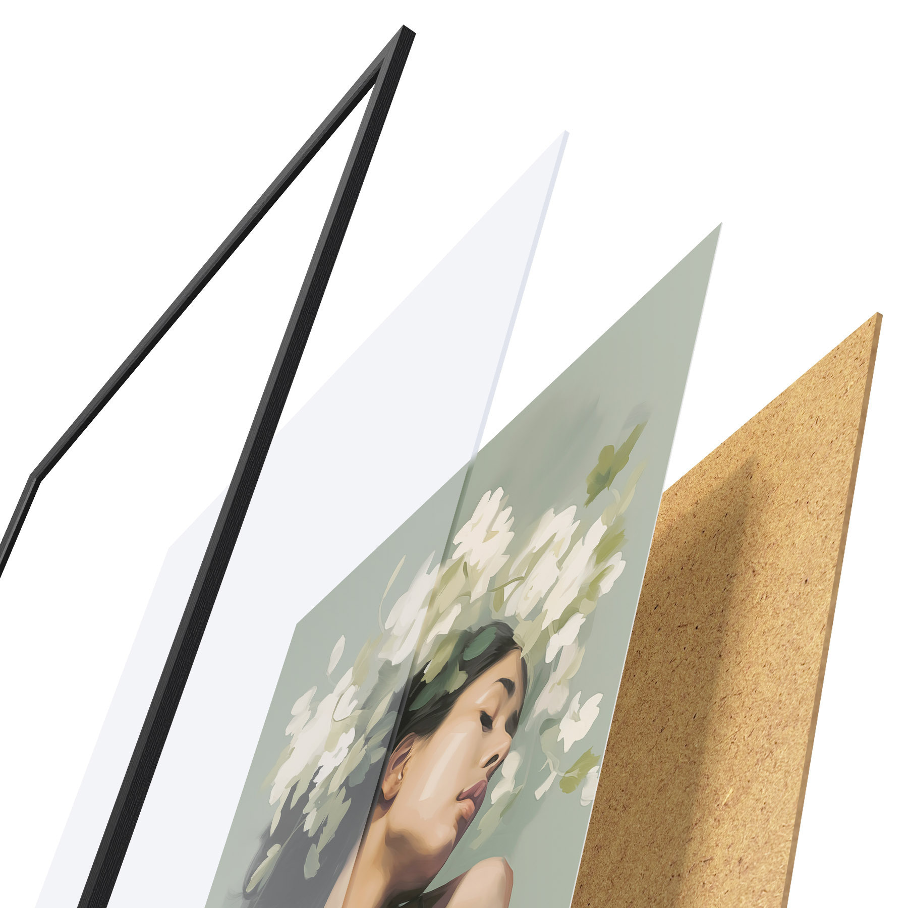 Plakat składa się z ramy, pleksi, wydrukowanego obrazu i podkładu z płyty wiórowej. Plakat można natychmiast zawiesić na ścianie dzięki uchwytom z tyłu.