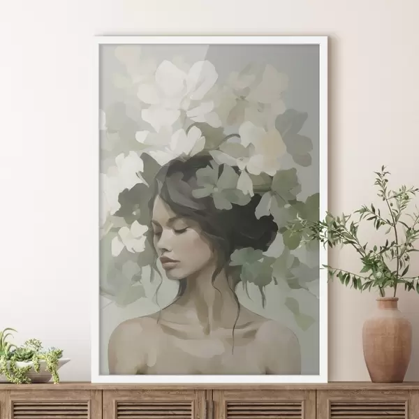 Plakat Portret dziewczyny w wieńcu z kwiatów f47807