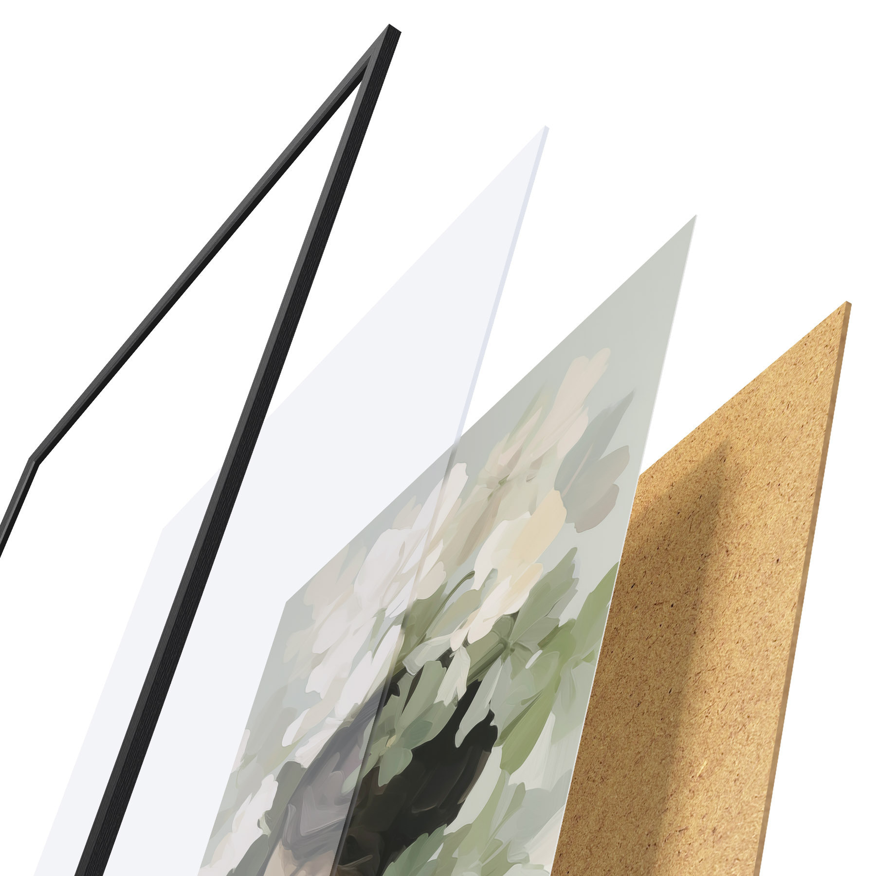 Plakat składa się z ramy, pleksi, wydrukowanego obrazu i podkładu z płyty wiórowej. Plakat można natychmiast zawiesić na ścianie dzięki uchwytom z tyłu.